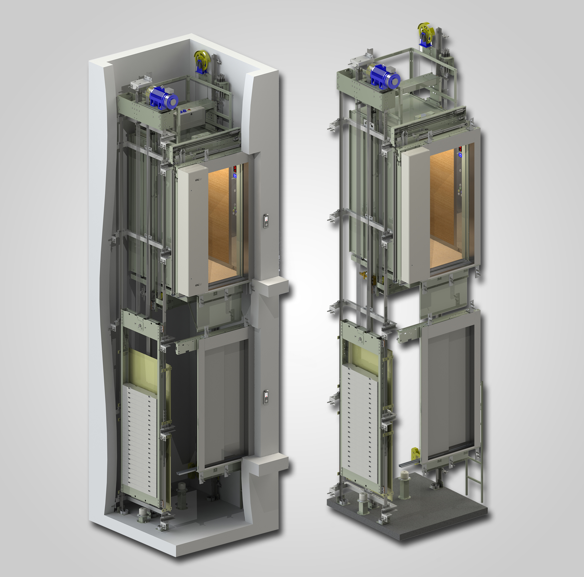 Yolcu trafiği yoğun olan makine dairesi bulunmayan binalar da tasarımcılar ve inşaatçılar için önemli avantaj sağlamaktadır. Makine dairesine gerek duyulmaması bina alanını arttırmakta ve sistemin enerji etkinliği işletme maliyetini düşürerek ek bir değer kazandırmaktadır. Geleneksel motorlara göre %40’a varan enerji tasarrufunun yanı sıra dişli kutusunun olmaması nedeniyle yıpranmayı minimum dereceye düşürmektedir.